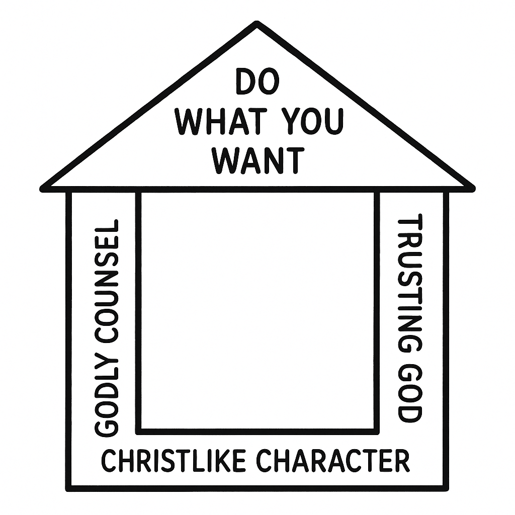 This framework—cultivating a Christlike heart, receiving godly counsel, trusting God, and exercising our freedom in Christ—is the biblical picture of decision-making. Remember the house I talked about? Here it is: